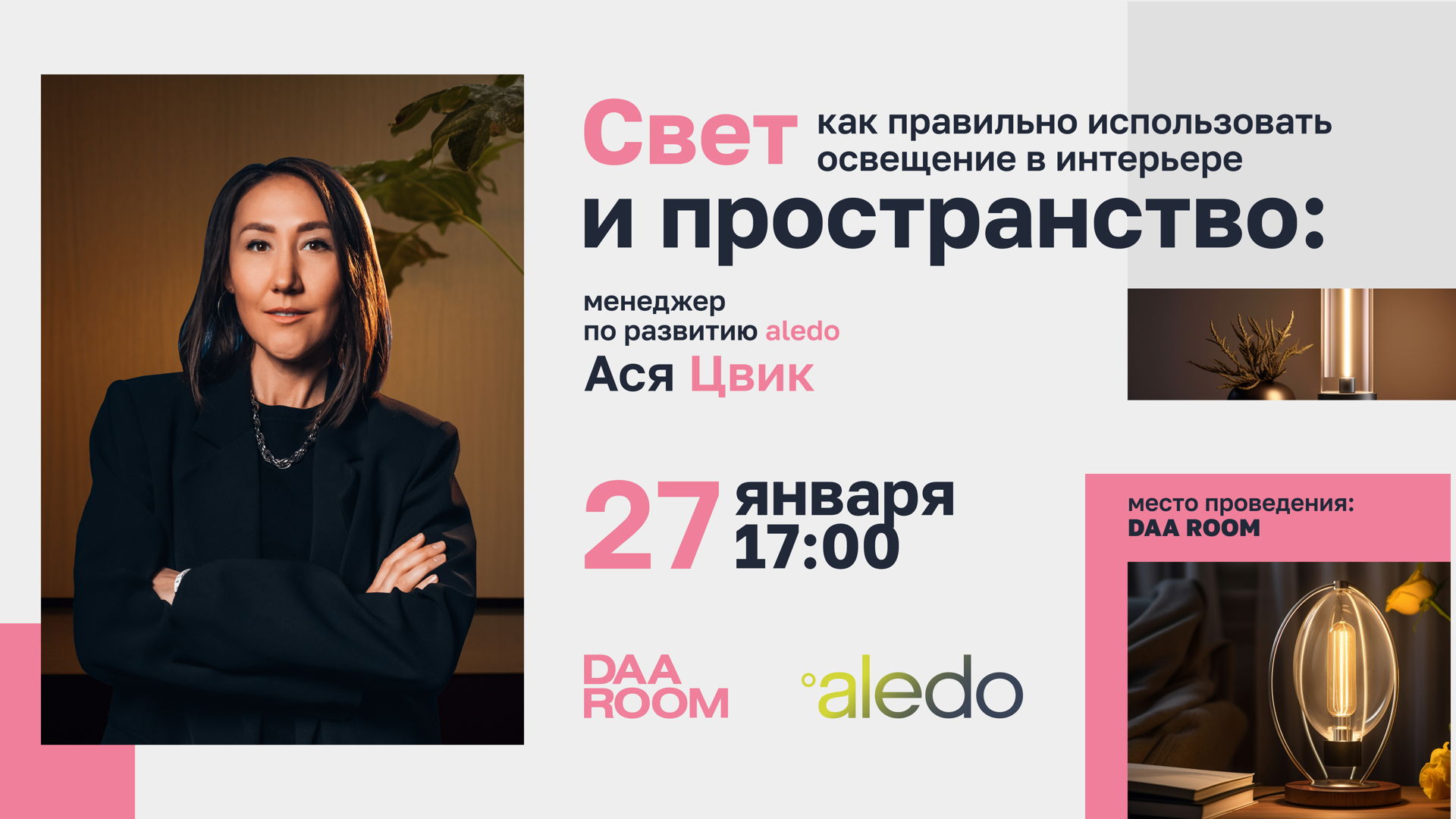 27 января в DAA ROOM вместе с Асей Цвик из светотехнической компании aledo мы углубимся в тему светодизайна XXI века.